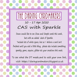 I'm back with another Daring Cardmakers Challenge. This weeks challenge is set by Dawn and she wants you to create a clean and simple card with a dash of sparkle.